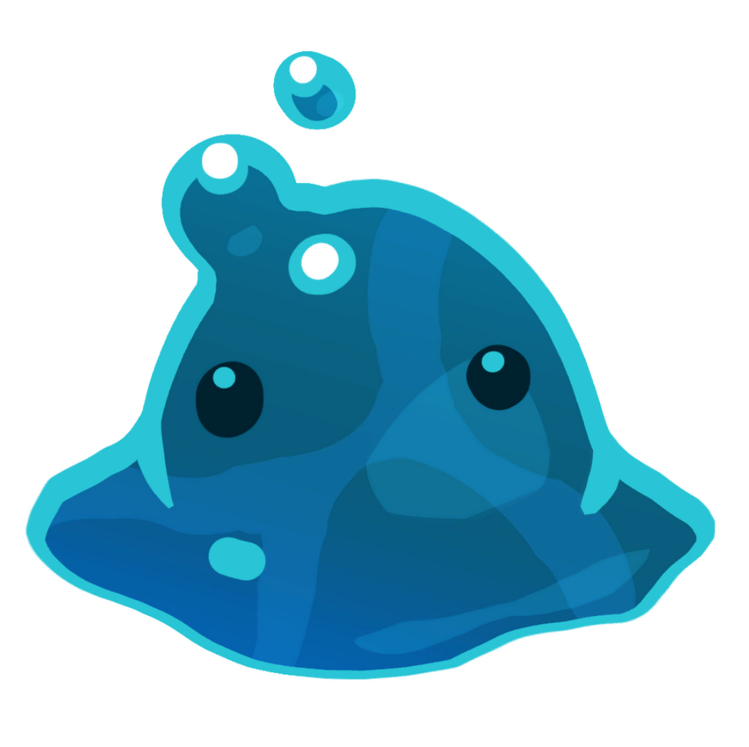 Puddle slimes are a rare species of slime that live in fresh water pools found on the range. These slimes don't eat fruits, veggies, or meat like most other slimes. Instead, puddle slimes absorb water into their bodies while they sit on the surface of a pool.